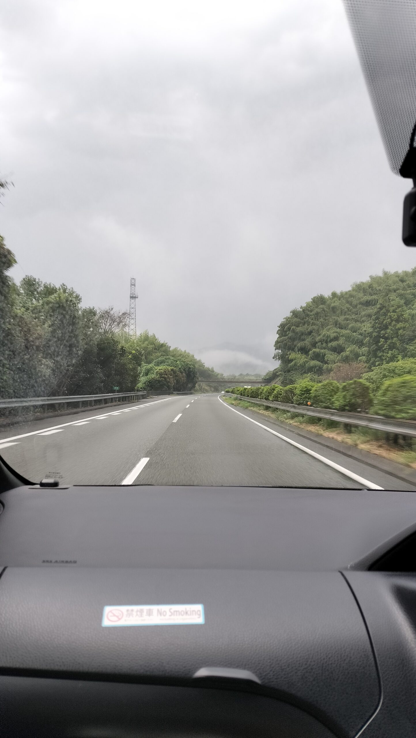 このバンド、北上すると大雨降ります。視界悪過ぎで、全然盛ってもなくもはや普通道の時速60kmでの走行。リハ間に合うのかって感じで走ります。写真はやっと普通になったとこ。
